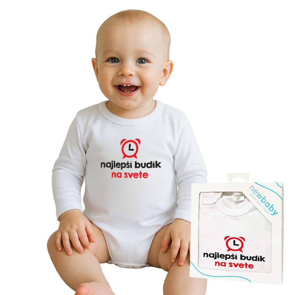 Body s potlačou New Baby najlepší budík na svete – darčekové balenie