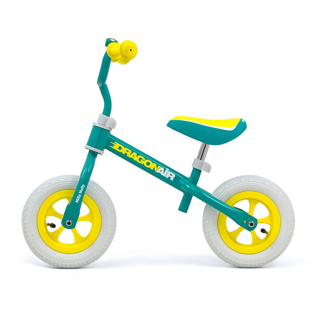 Detské odrážadlo-bicykel Milly Mally DRAGON AIR je ideálne, keď sa dieťa učí udržať rovnováhu. Vďaka širokým nafukovacím gumovým pneumatikám z odolného materiálu zabezpečí stabilitu a bezpečnosť na rôznych povrchoch. Nastaviteľné riadidlá a sedlo zabezpečia, že odrážadlo-bicykel „porastie“ s malým cyklistom. Nekĺzavé rukoväte a vhodne profilované sedlo poskytne pohodlie pri objavovaní nových „cyklistických trás“.
