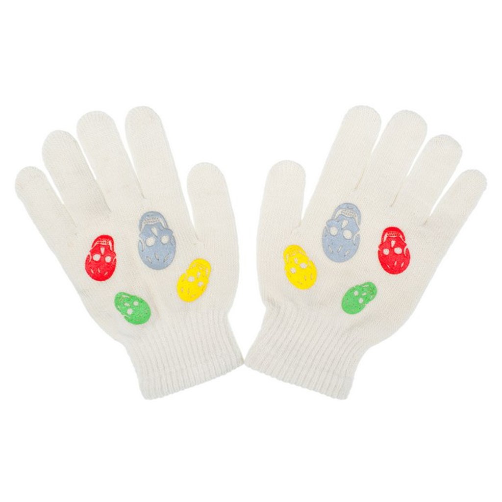 Nádherné detské zimné úpletové rukavičky New Baby. Rukavičky majú sťahovací pružný lem. Rukavičky zdobia obrázky farebných lebiek. Dĺžka je cca 18 cm. Zloženie: 85% polyester, 15% elastan.