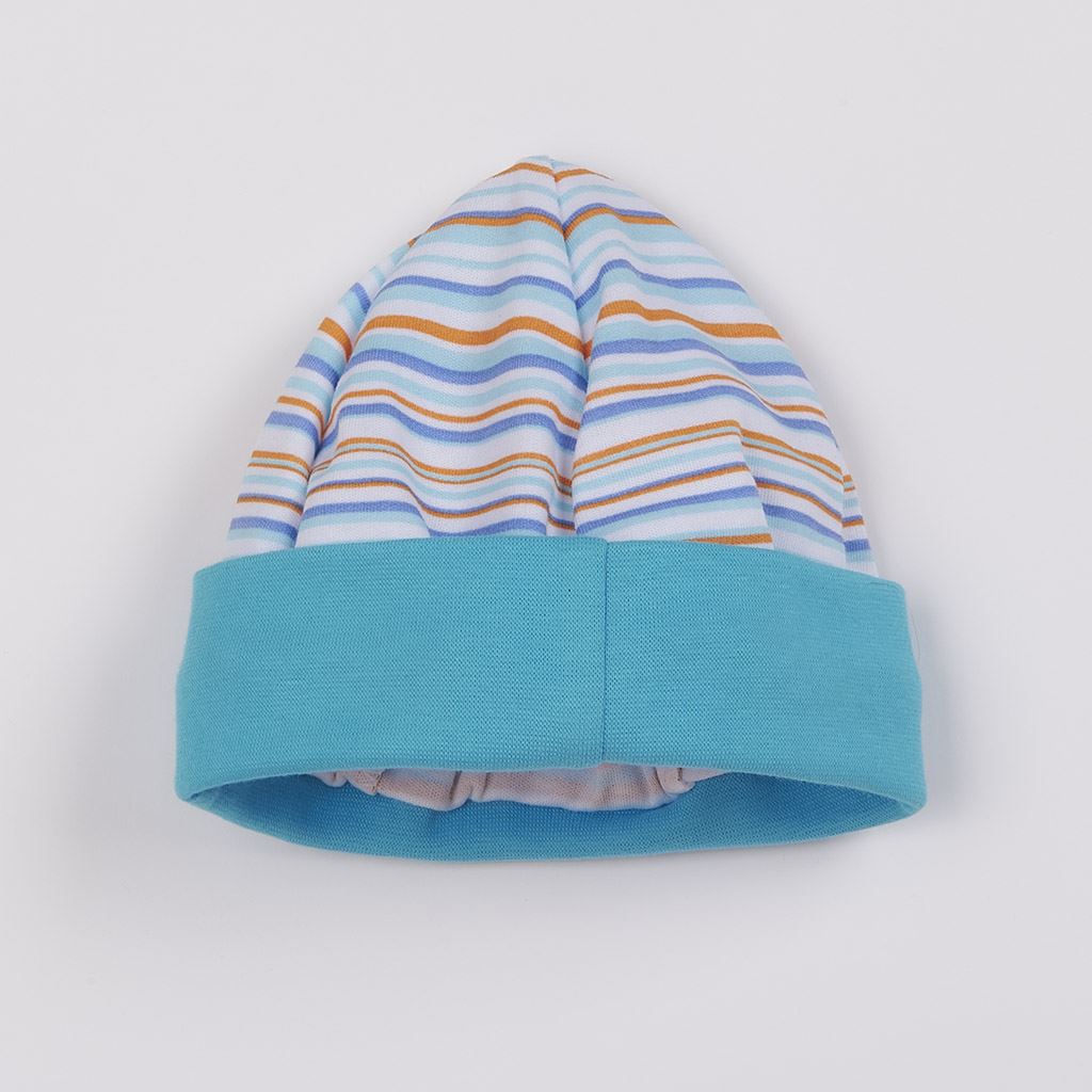 Bavlnená kojenecká čiapočka New Baby Puppik 2. Čiapočka má široký pružný lem, ktorý krásne kryje ušká a netlačí. Čiapočku zdobia originálne pruhy. Zloženie: 100% bavlna. Obvod: cca 32 cm.