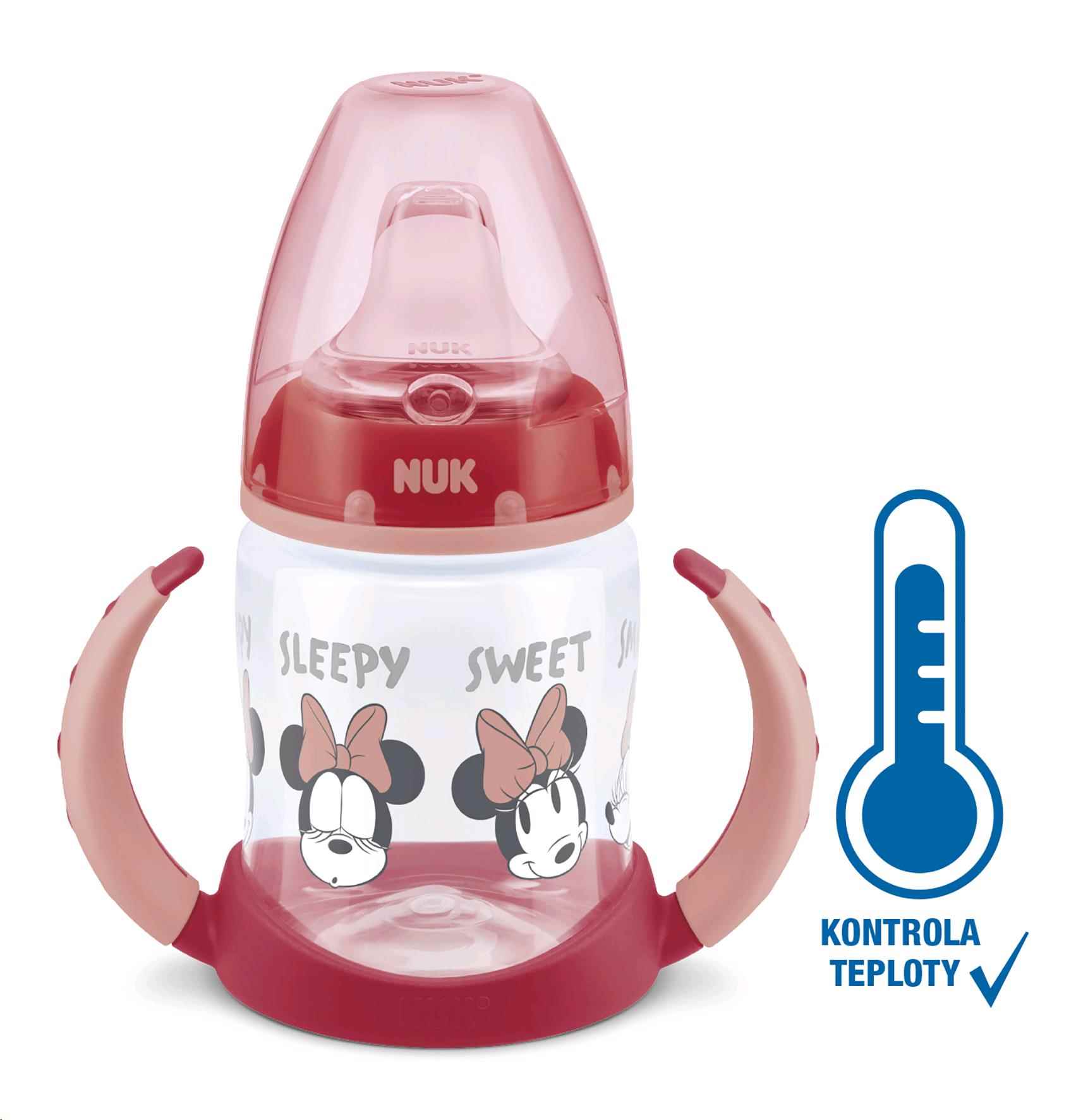 Dojčenská fľaša na učenie NUK Disney Mickey s kontrolou teploty 150 ml červená