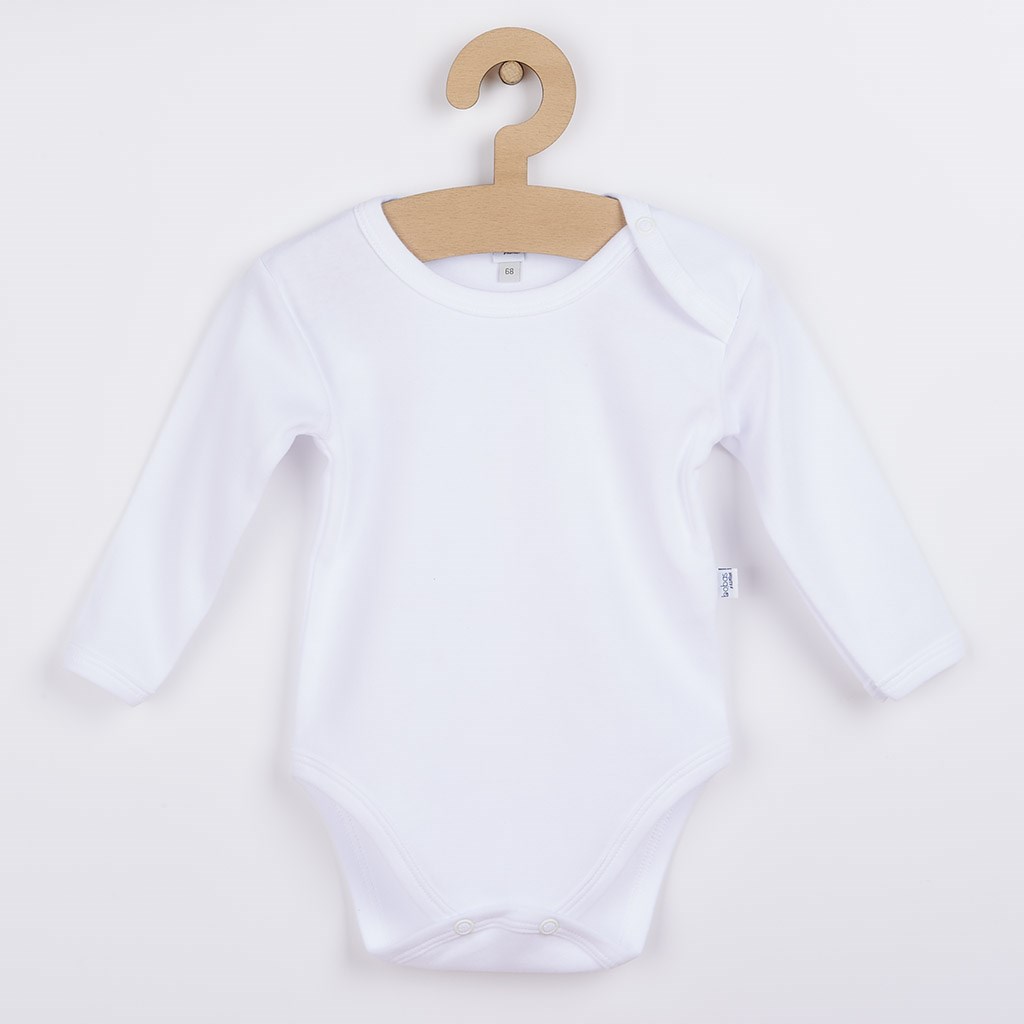 Klasické biele bavlnené dojčenské body Bobas Fashion s dlhým rukávom. Rozmery: obvod okolo hrudníka cca 40 cm, dĺžka od ramienok cca 34, dĺžka rukáva cca 20 cm. Zloženie: 100% bavlna.