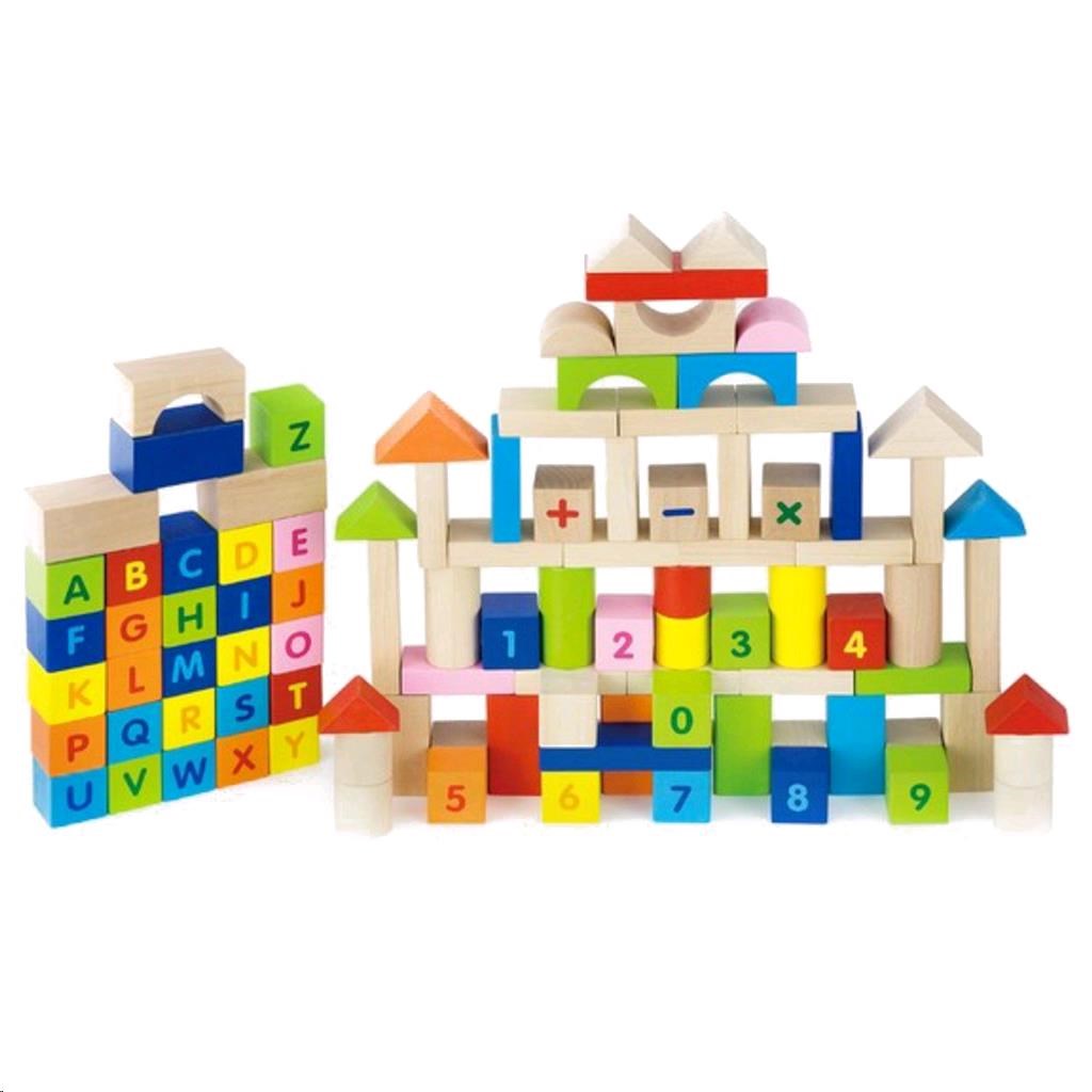 Drevené kocky pre deti Viga Písmenka a čísla 100 dielov