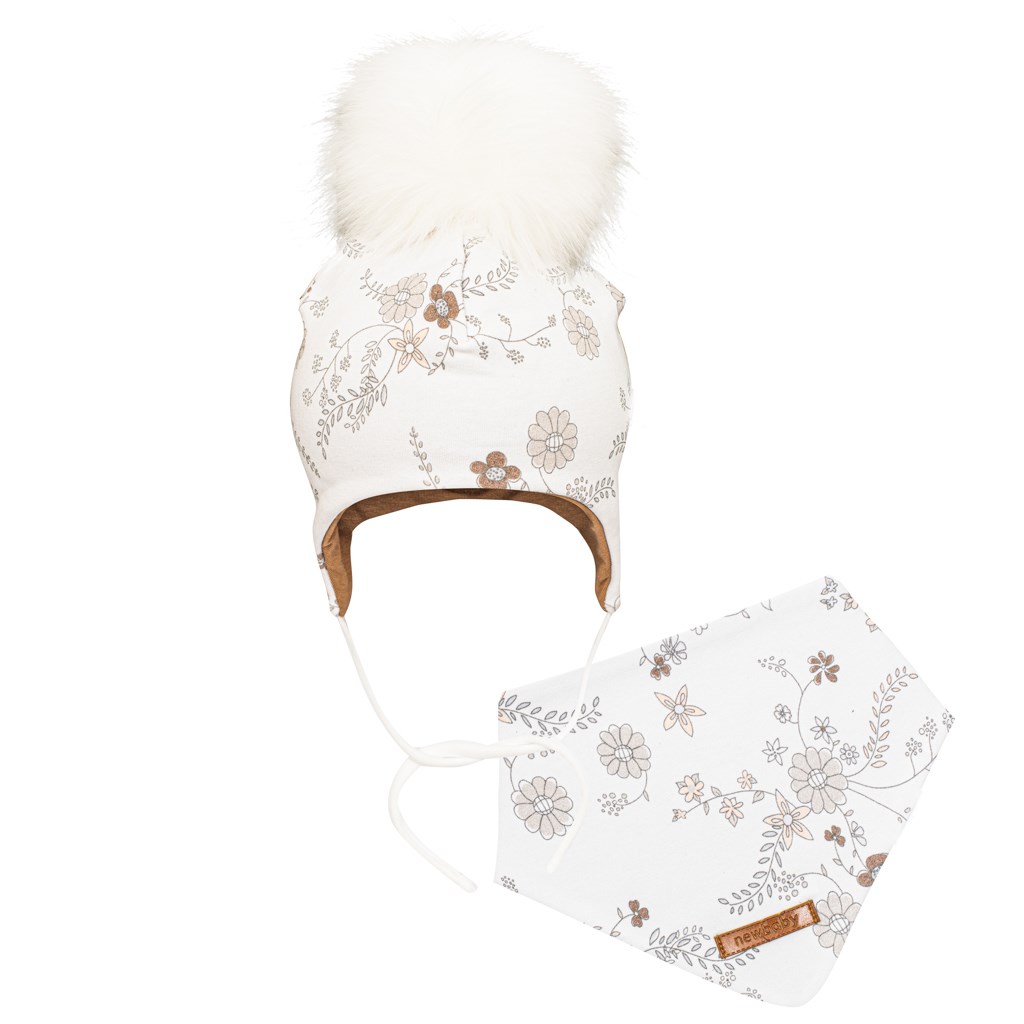 Jesenná 2-dielna súprava New Baby Special One. Set sa skladá z čiapočky a šatky na krk. Čiapočka s podšívkou je krásne tvarovaná na ušká, zaväzuje sa na šnúrky a dobre drží na hlavičke bábätka. Je zdobená krásnym brmbolcom a celý set je vyrobený z príjemnej na dotyk látky, ktorá je potlačená kvietkami. Šatku na krk je možné zapnúť do 2 veľkostí. Kvalitný a veľmi praktický doplnok do chladného počasia. Pre New Baby je veľmi dôležitá spokojnosť zákazníka a práve preto vám ponúkame set z kolekcie New Baby Special One. Vrchný materiál: 95% bavlna, 5% elastan. Podšívka: 95% bavlna, 5% elastan. Vhodné na zimu aj jeseň.