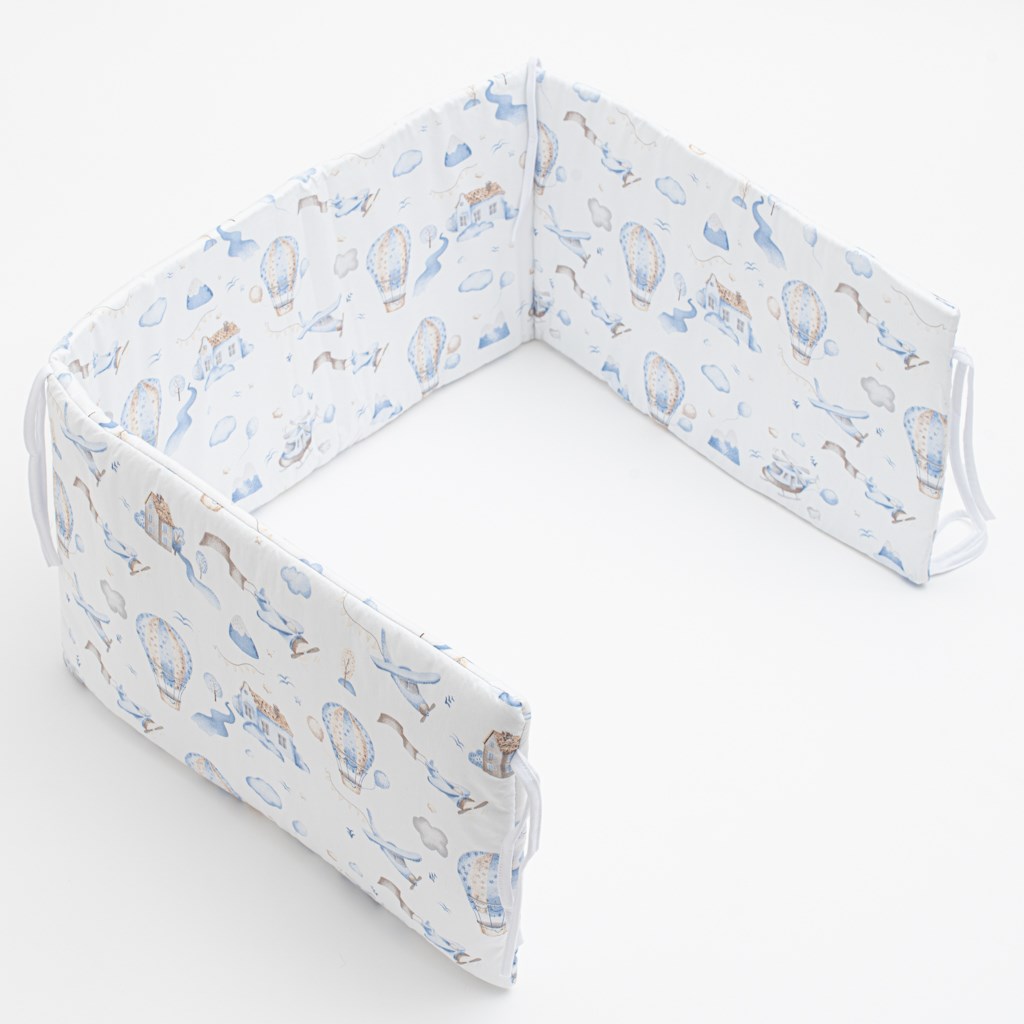 Praktický mantinel do postieľky New Baby Romance s potlačou rozprávkového dobrodružstva v oblakoch. Je vyrobený z mäkkého, príjemného materiálu. Zloženie: 100% bavlna. Výplň: 100% polyester. Upevnenie k postieľke za pomocou stúh. Rozmer: cca 150 cm.