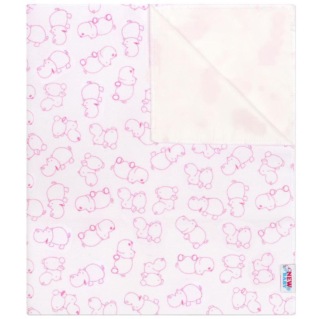 Nepremokavá flanelová podložka New Baby hrošík bielo- ružový