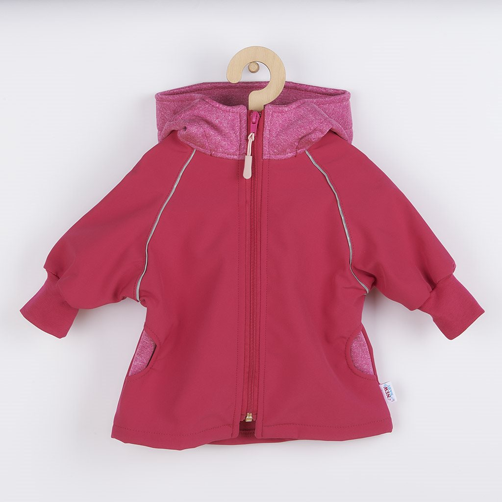 Nápaditá softshellová dojčenská bundička New Baby. Bundička je vyrobená v Českej republike z kvalitného materiálu softshell. Materiál je hladký, elestický, mäkký a príjemný na dotyk. Do určitého stupňa je tiež vodeodolný, nenasakuje vodu a je odolný voči znečisteniu. Praktické zapínanie na zips po celej dĺžke veľmi uľahčí obliekanie a prebaľovanie. Zips je po celej dĺžke podšitý látkou, a tým je zamedzené prefukovaniu vetra na pokožku bábätka. Bundička má praktickú kapucňu, širšie pružné lemy na rukách a v páse a celá vnútorná strana je zateplená nakrátko strihaným polarom, ktorý zvyšuje komfort nosenia a zaisťuje teplo. Na rukávoch sú našité reflexné paspulky. Softshellová bundička je vhodná ako športové oblečenie, je odolná vetru a zároveň priedušná. Bábätko sa bude cítiť veľmi pohodlne a príjemne.